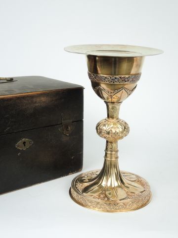 Calice et patène en argent, poinçon Minerve, Dans leur coffret. Poids : 580 g