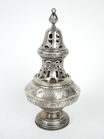 Encensoir en argent, poinçon Minerve, à décor de feuillage. Poids : 227g