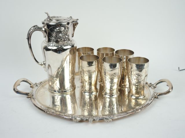 GALLIA. Service à orangeade Art Nouveau en métal argenté (désargenture, accidents, soudure)