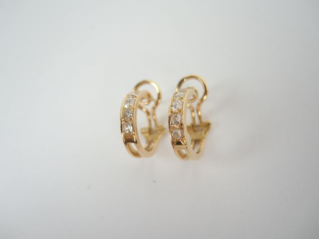 Paire de perce-oreilles monture or jaune, pavées de diamants taille ancienne. Poids tel: 5,9gr