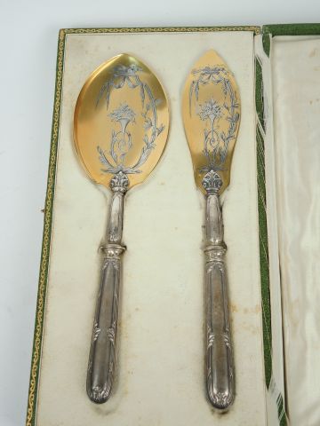 Service à glace manches argent fourré, de style Louis XVI. Dans son écrin