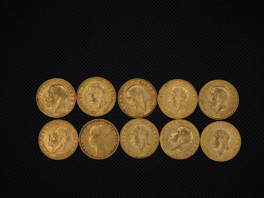 10 souverains or : 1914, 1931, 1930, 1918, 1931, 1931, 1887, 1928, 1931, 1912