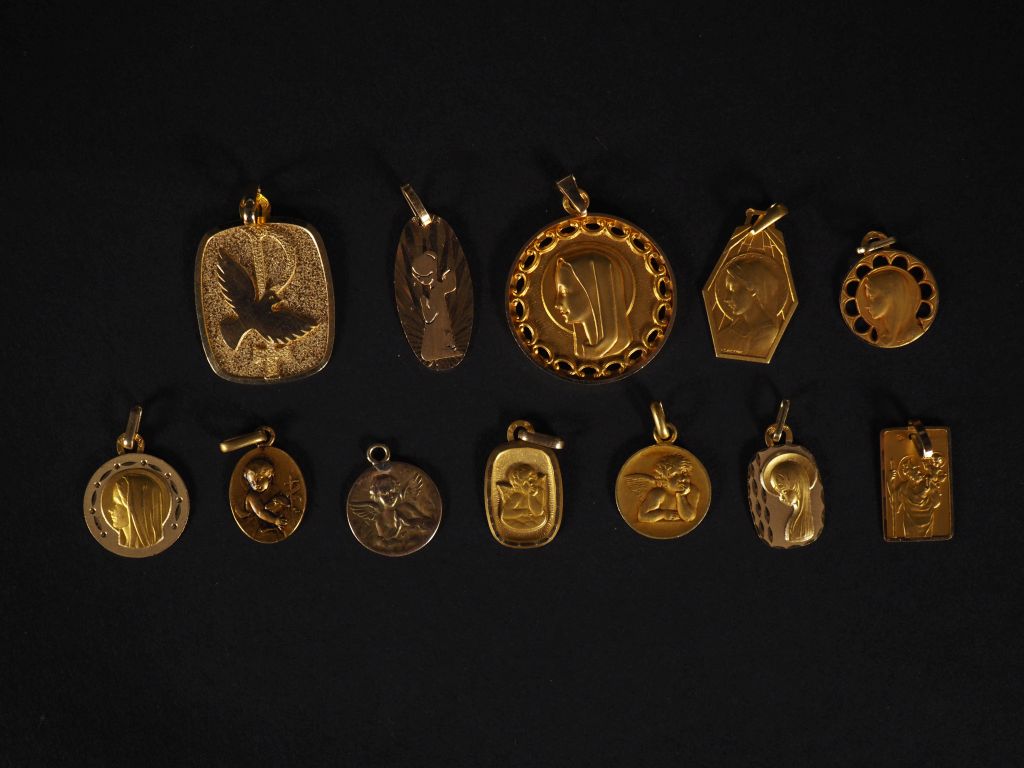 22 médailles de baptême en or 750 Poids : 40 g