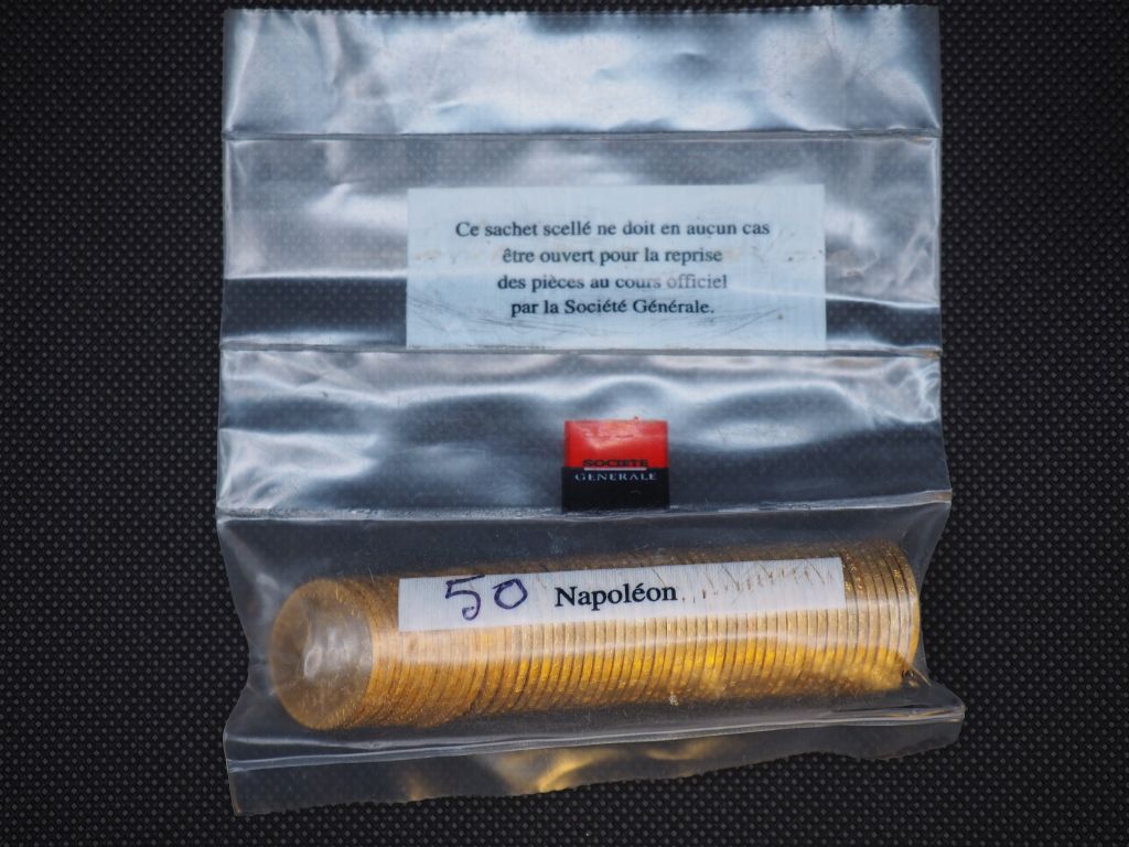 50 pièces de 20 Francs or (une date visible 1913) Dans un sachet sous scellé de Banque