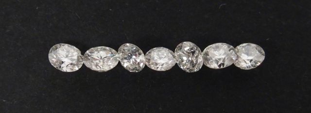 7 diamants taille moderne sur papier:- 0,14ct environ, - 2 x 0,16ct environ, - 3 x 0,11ct environ, - 0,12ct environ,