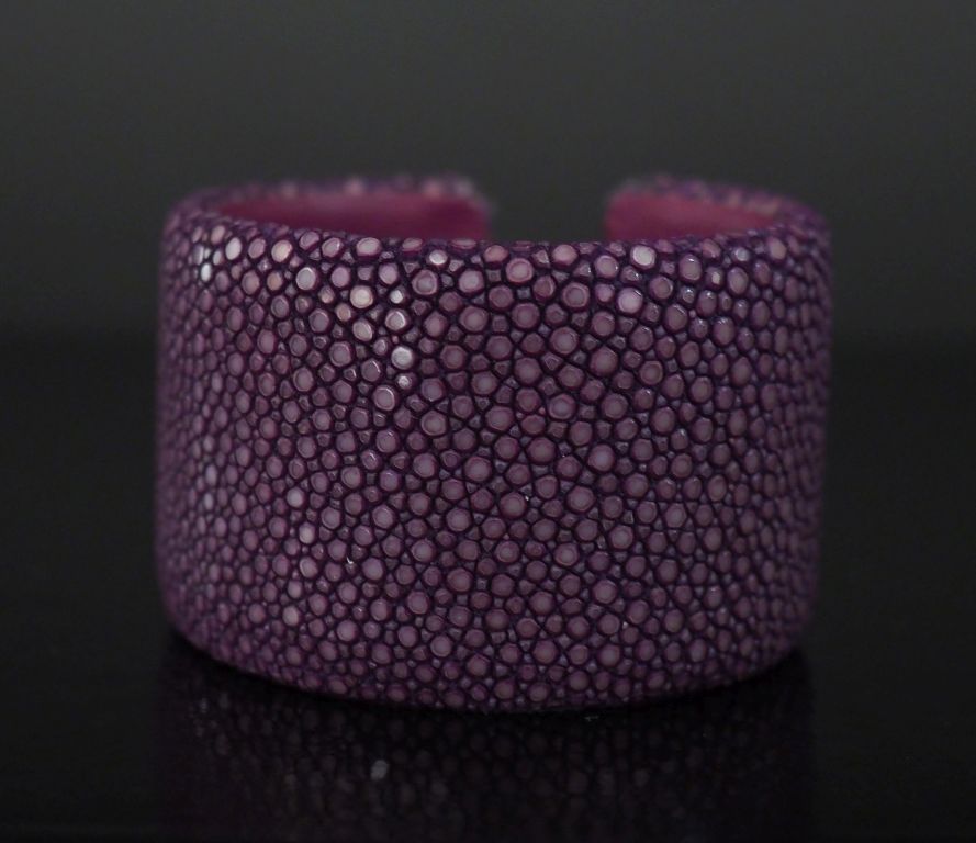 AKNAS Bracelet manchette en galuchat violet. Signé. Larg. 4 cm 4,6 x 5 cm