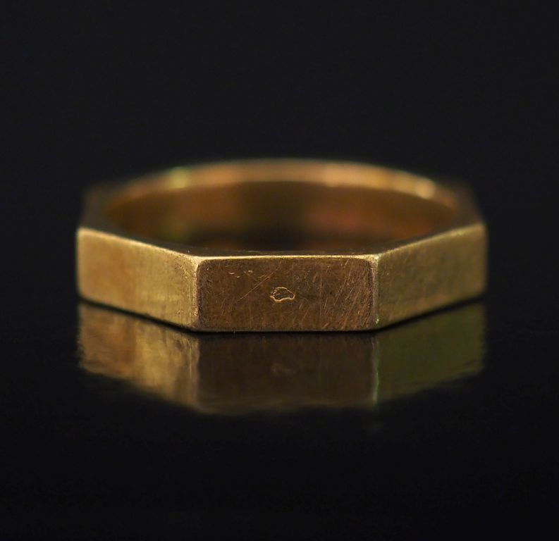 Alliance à pans coupés en or jaune. TDD. 60 1/2 Poids. 5,78 g (gravée à l'intérieur)