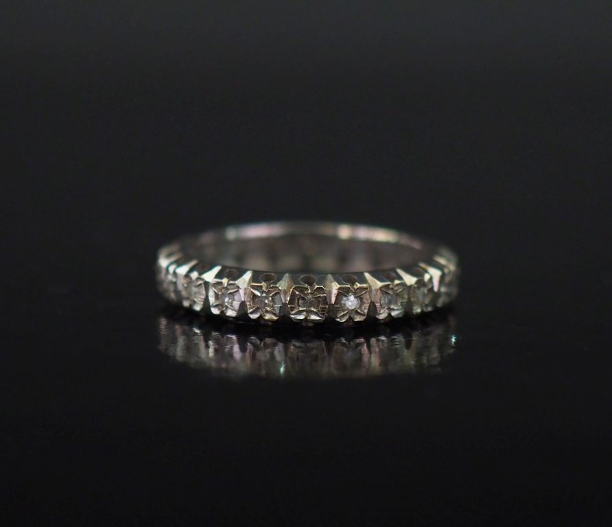 Alliance américaine en or blanc 750, sertie d'une ligne de petits diamants. TDD. 52 Poids tel. 2,72 g