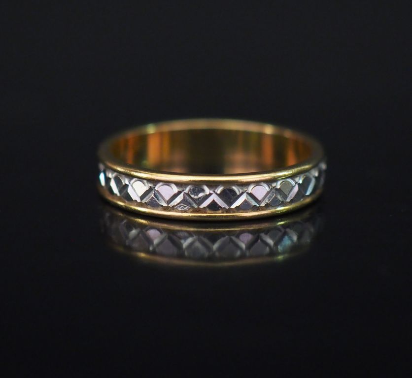 Alliance deux tons d'or, à décor de croisillons. TDD. 57 Poids. 3,71 g
