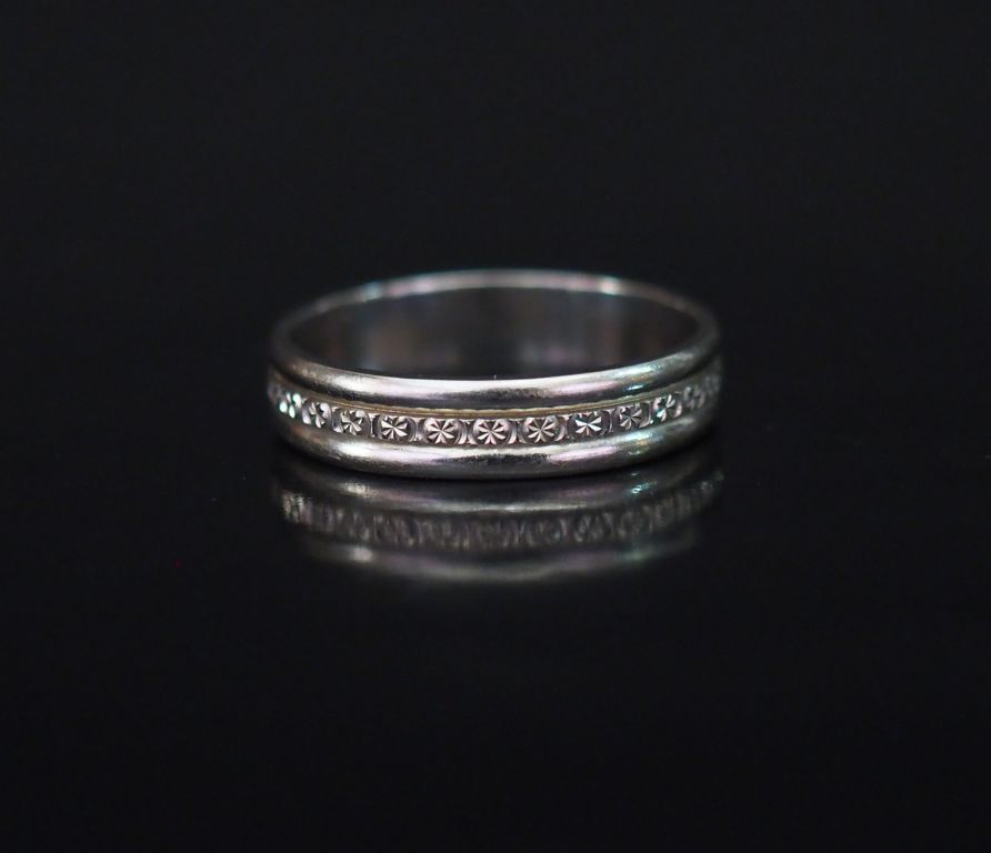 Alliance en or blanc, à décor d'étoiles. TDD. 57 Poids. 3,34 g