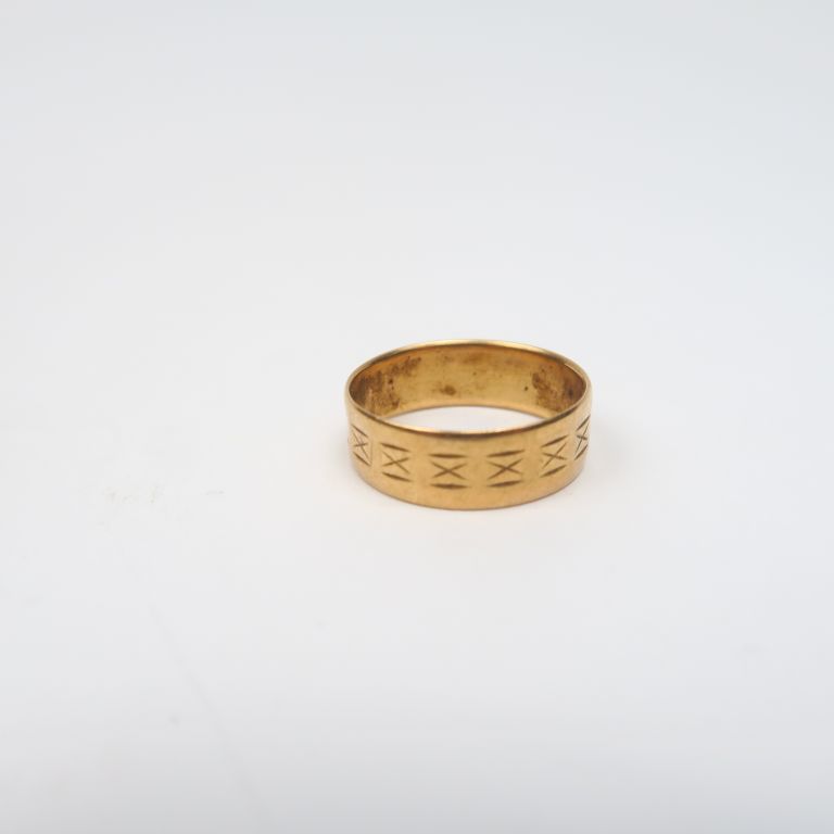 Alliance en or jaune, à décor de croisillons. TDD.58 Poids. 4,17 g