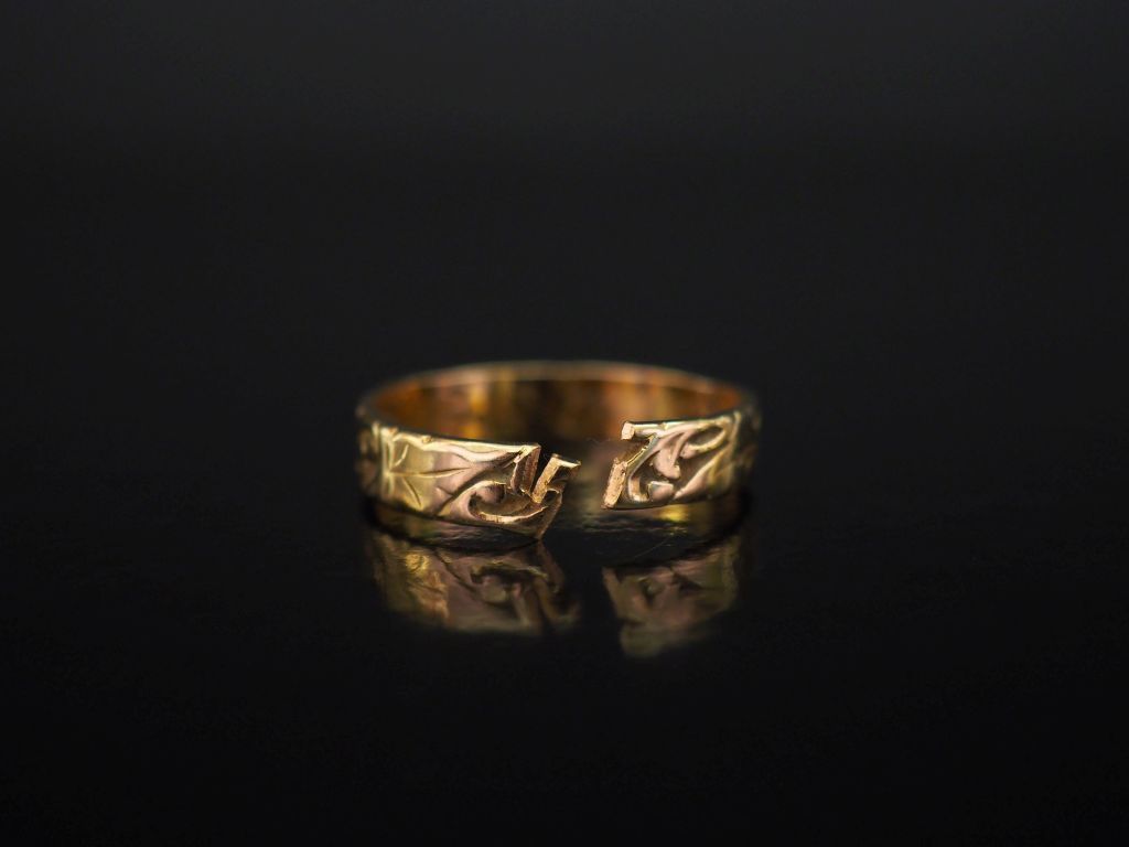 Alliance en or jaune, à décor de rinceaux feuillagés. Poids. 4,55 g (coupée)