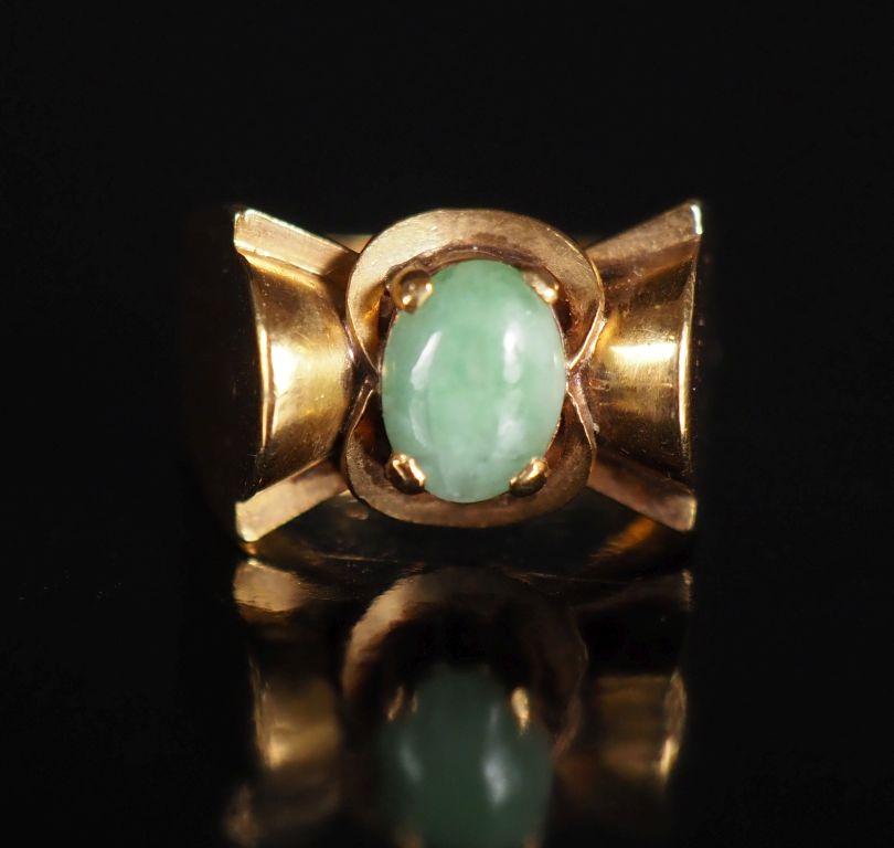 Bague 1940 en jadéite et or 750 Poids tel : 4,50 g