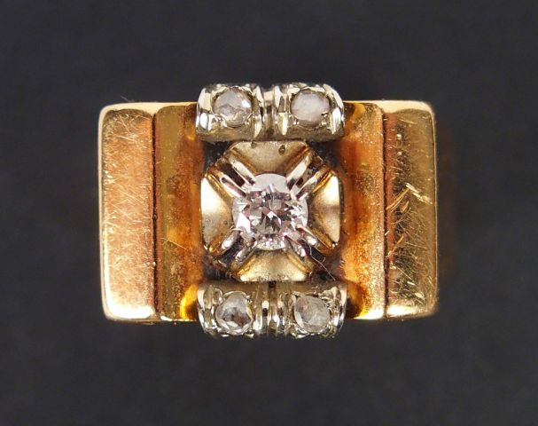 Bague 1960 en or jaune ornée d'un brillant de 0,14cts environ. TDD 54,5 Poids tel: 7,9gr
