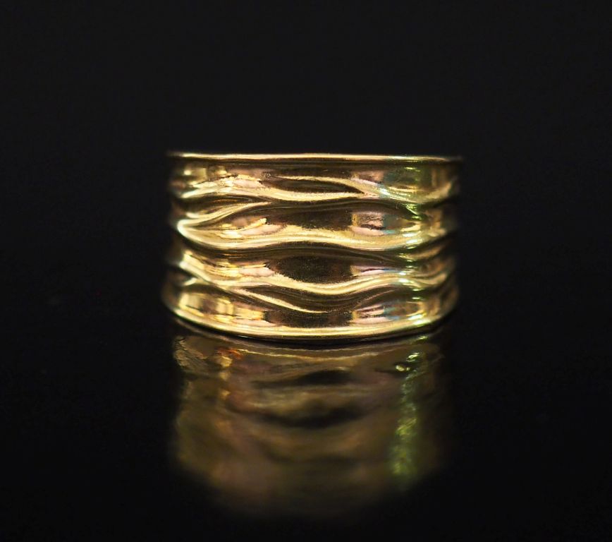 Bague bandeau en or jaune, à décor de cannelures mouvementées. TDD. 5...