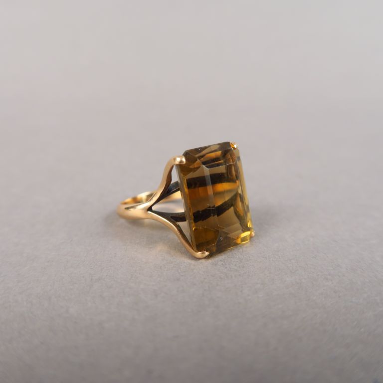Bague de dame en or jaune 14k, ornée d'un quartz. Poids tel. 7,27 g