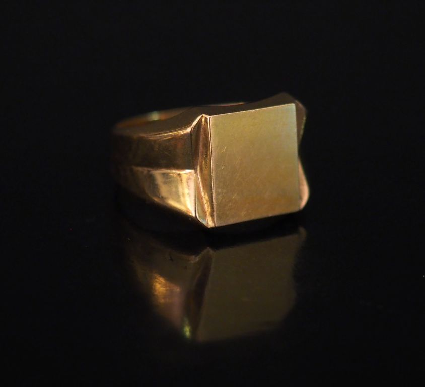 Bague de forme chevalière en or jaune. TDD. 63 Poids. 7,80