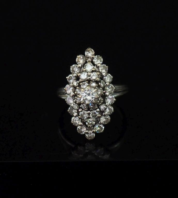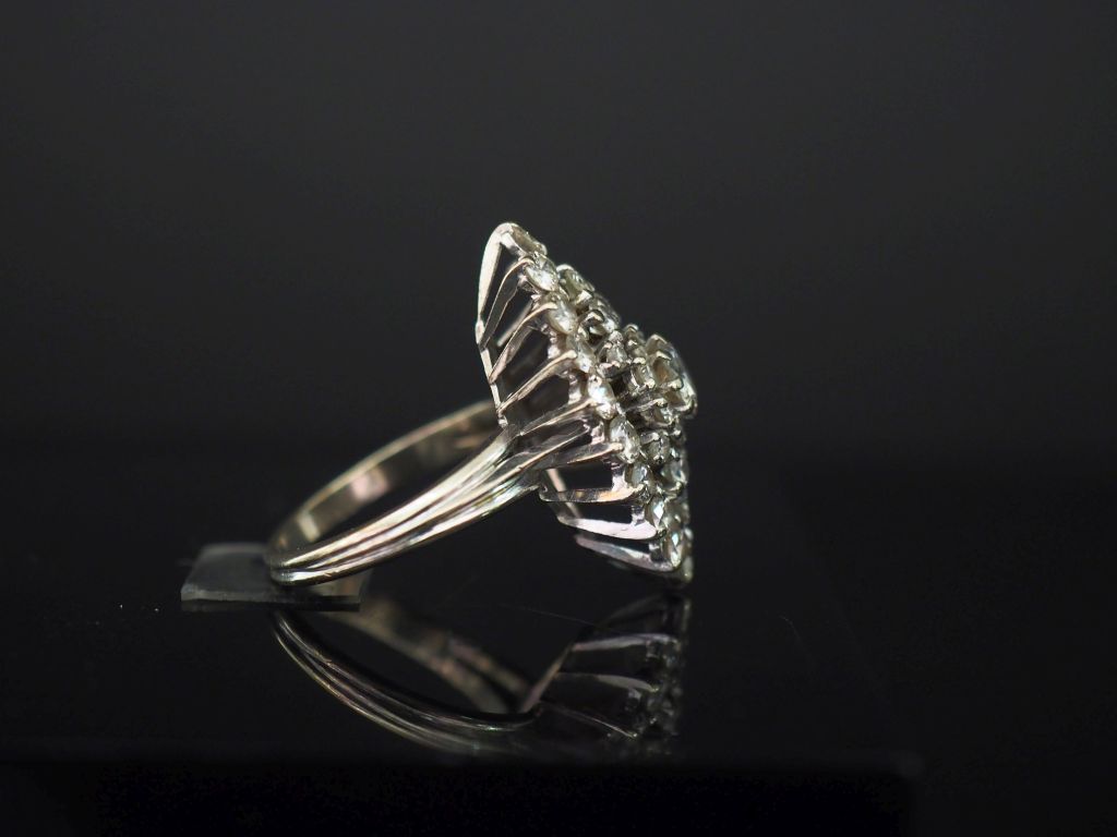 Bague de forme marquise en or blanc, sertie de diamants. Diamant central pesant environ 0,4 ct. TDD. 57 1/2 Poids tel. 8,42 g