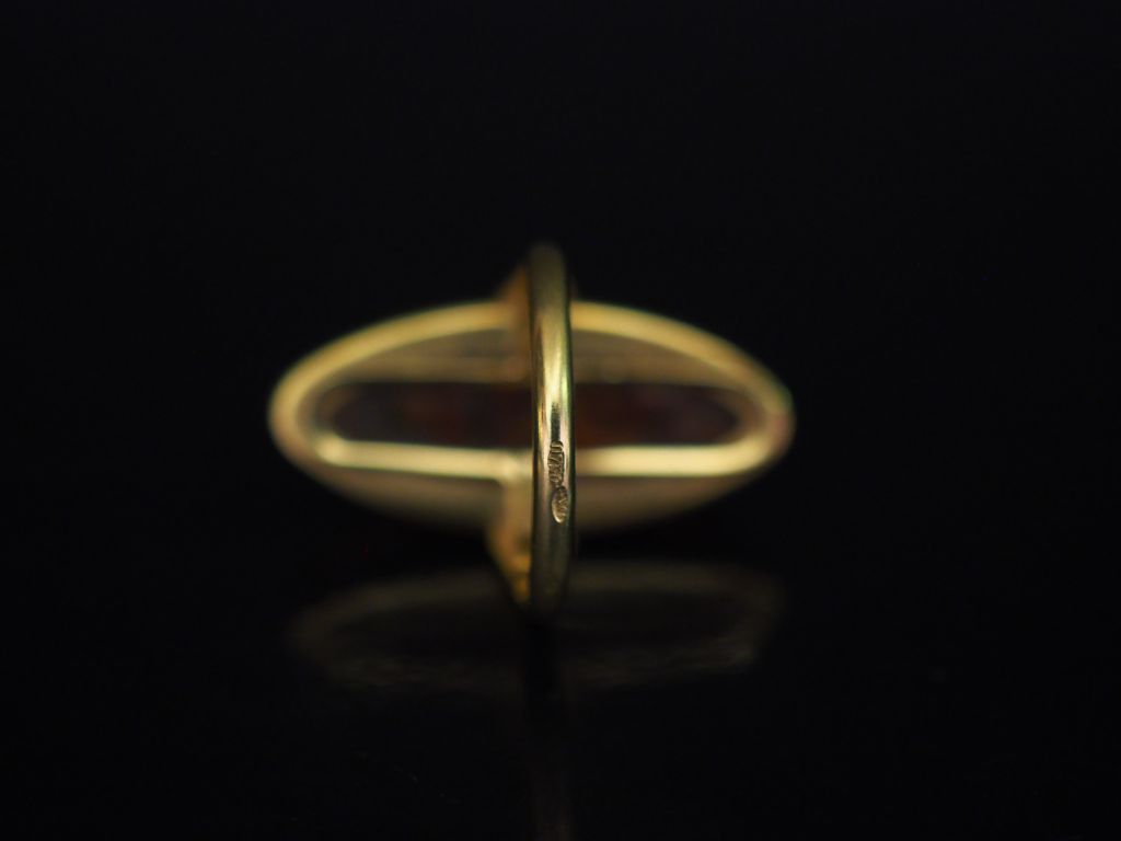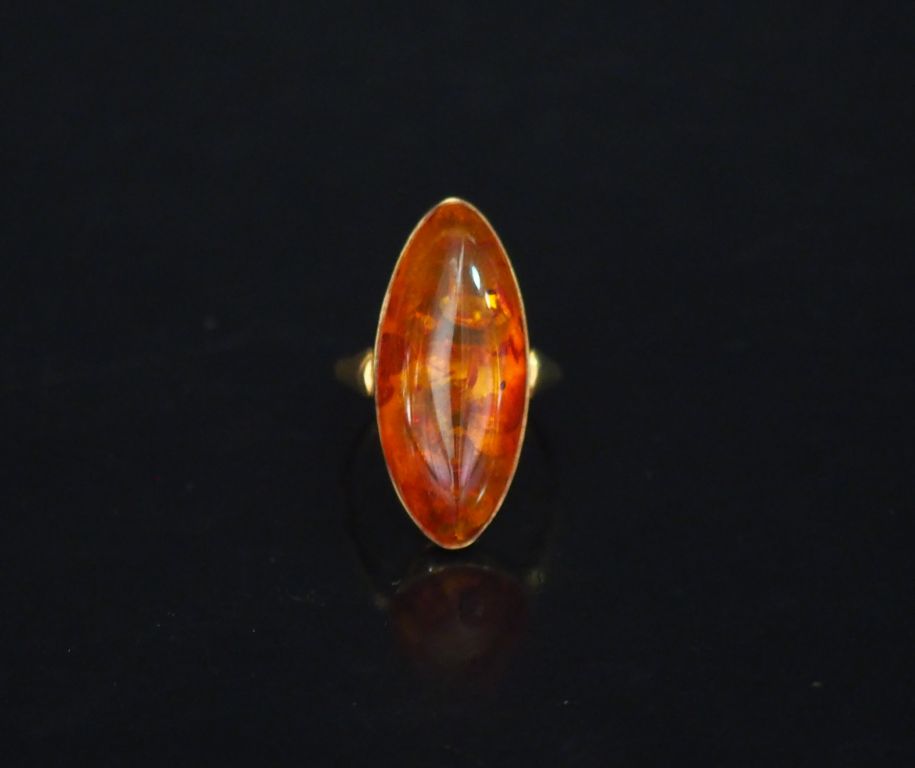 Bague de forme marquise en or jaune, sertie en son centre d'une imitation d'ambre. TDD. 52 Poids tel. 4,83 g