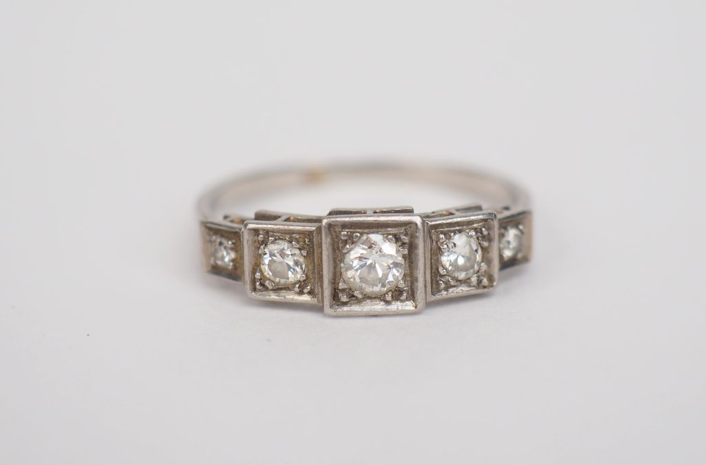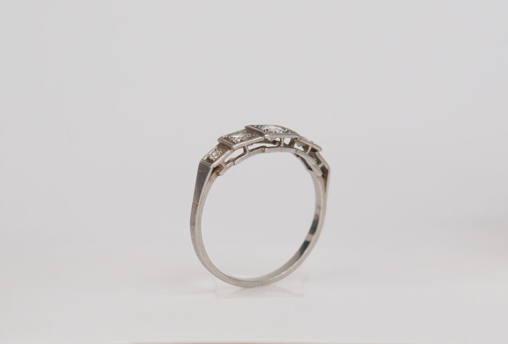 Bague de style Art déco en platine, sertie de quatre petits diamants. TDD. 58 Poids tel. 2,87 g