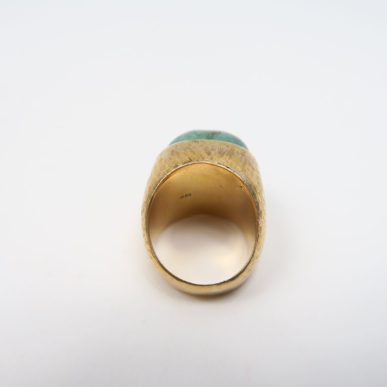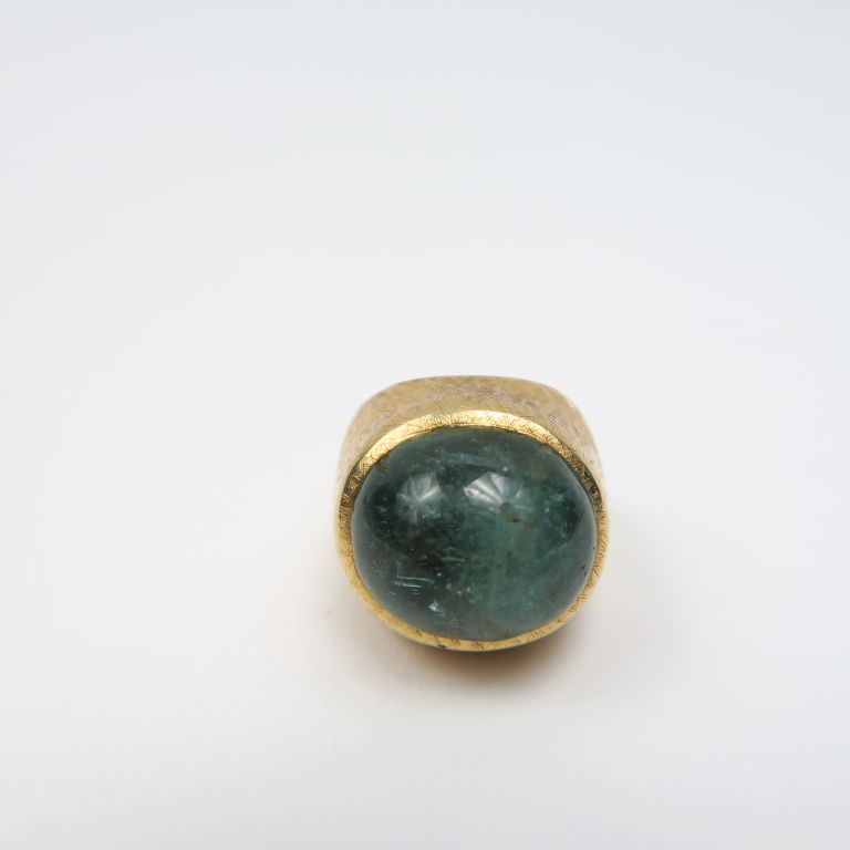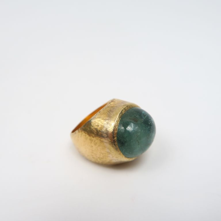 Bague dôme en or jaune, ornée d'une émeraude en cabochon. Poids tel. 17,20 g