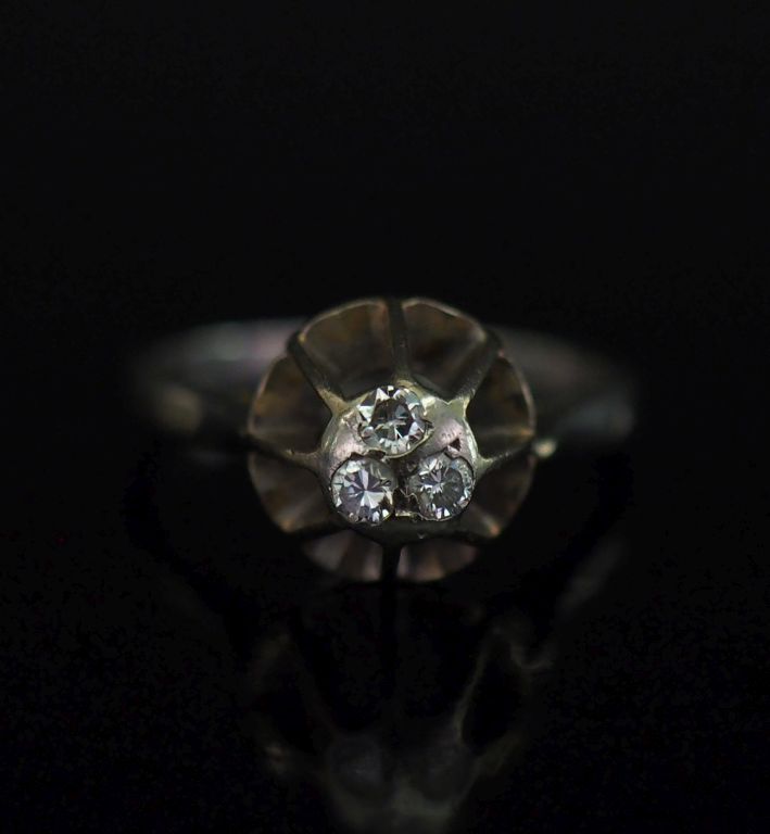 Bague en or blanc 750, sertie de trois petits diamants. TDD. 53 Poids tel. 3,52 g
