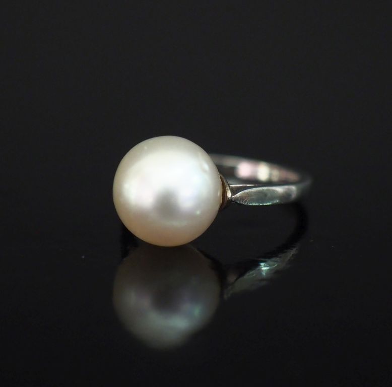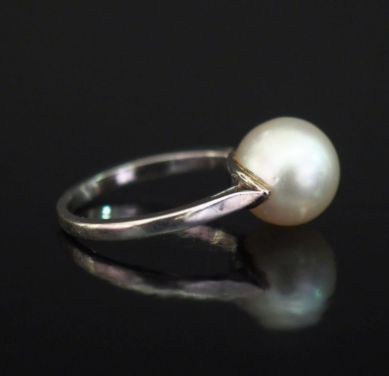 Bague en or blanc 750, sertie en son centre d'une perle blanche. TDD. 49 Poids tel. 3,68 g