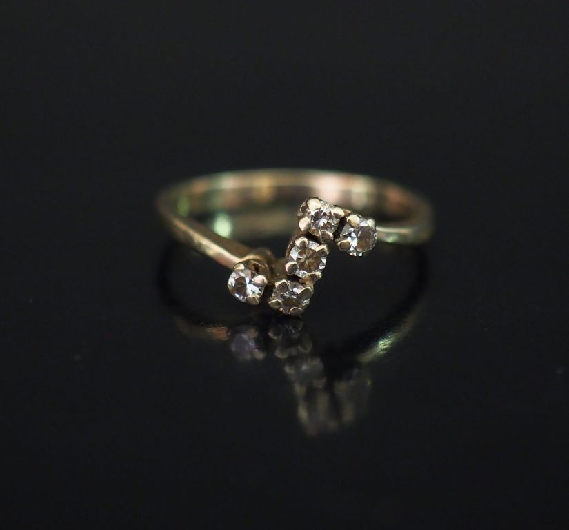 Bague en or blanc et cinq diamants. Poids tel : 2,13 g