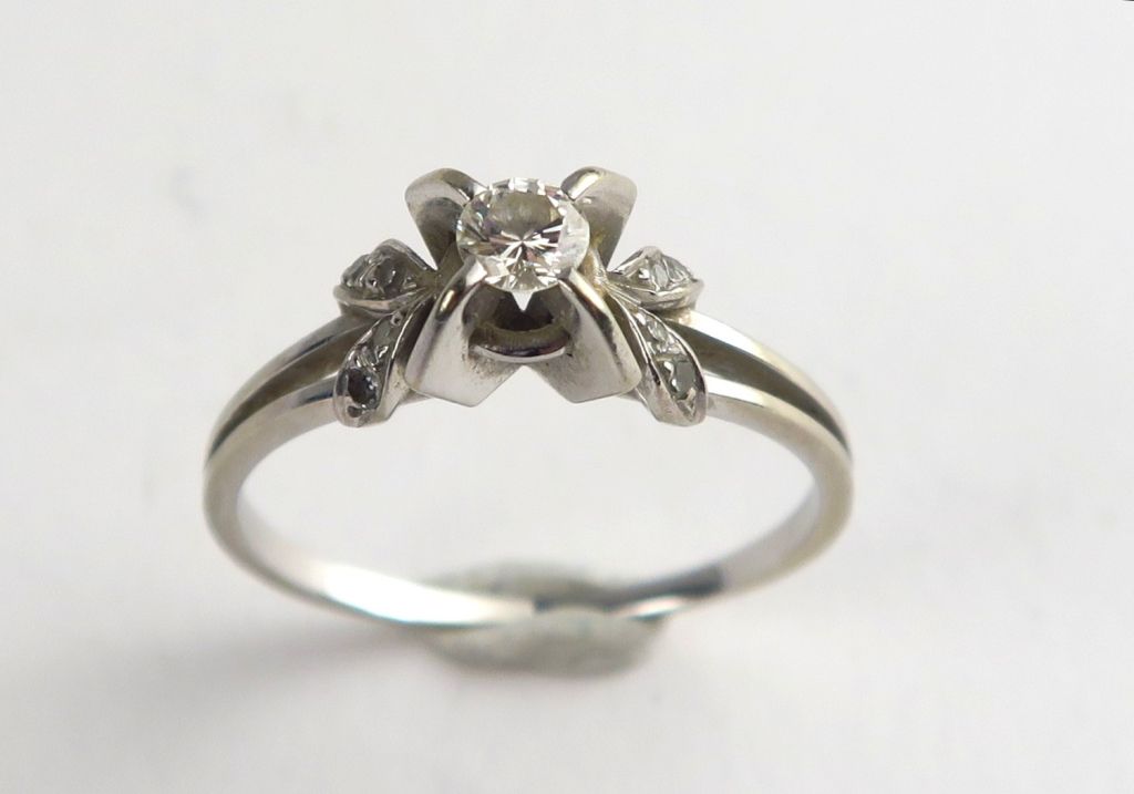 Bague en or blanc ornée d'un diamant de 0,15 carat environ, et de diamants taillés en rose. Poids tel. 3 g