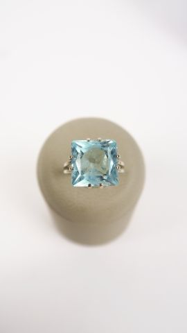 Bague en or blanc sertie d'une aigue marine. 3 g