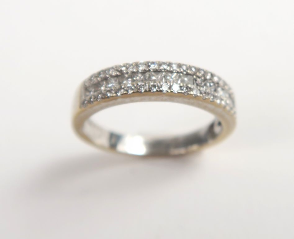 Bague en or gris, ornée de brillants. Poids tel : 4 g. TDD : 53,5
