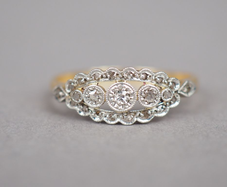 Bague en or jaune, ornée de petits diamants et d'éclats de diamants. TDD. 55 Poids tel. 1,98 g (petits manques)