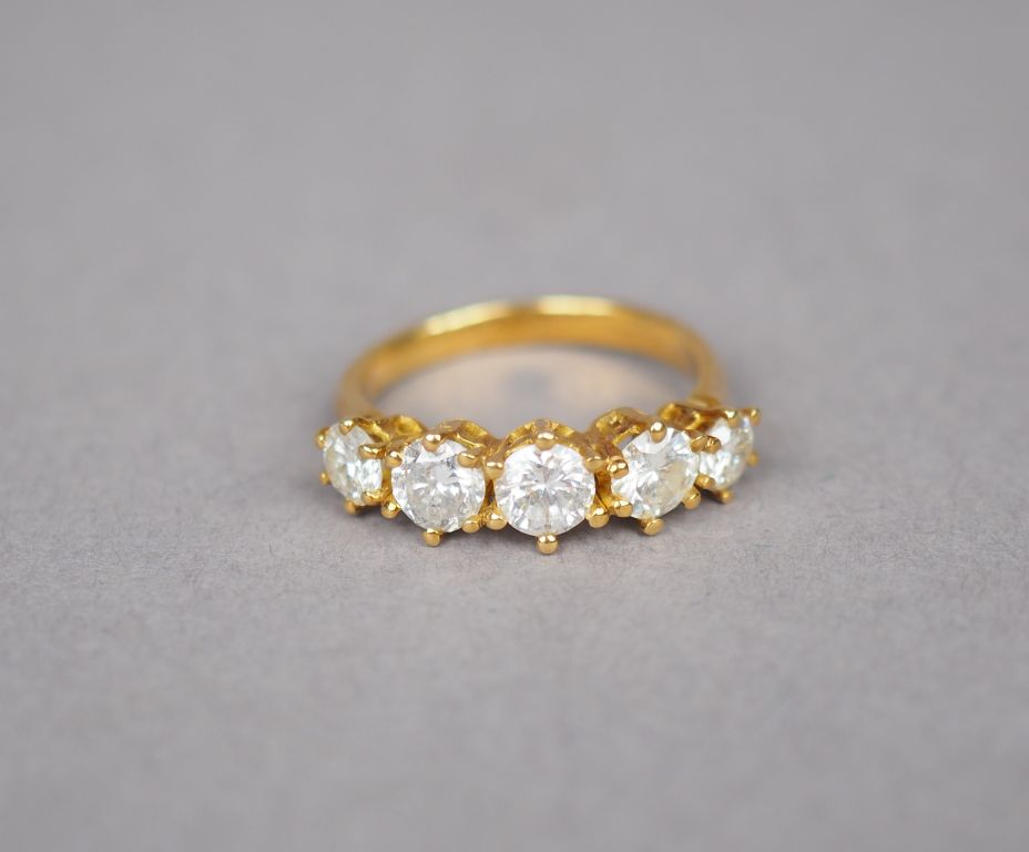 Bague en or jaune, ornée d'une ligne de cinq diamants. TDD. 50 Poids tel. 3,23 g