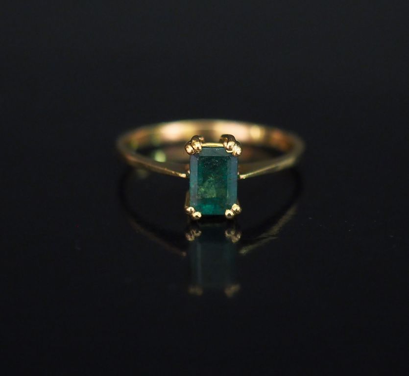 Lot de Bague en or jaune, sertie en son centre d'une émeraude. TDD. 55 1/2 Po au prix de 100 à 150 € en vente aux enchères par l'hôtel des ventes Primardeco