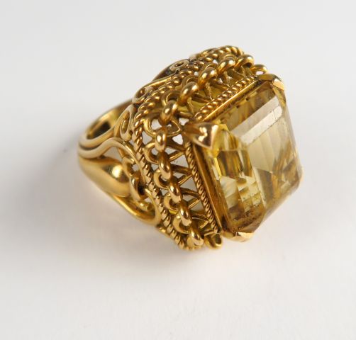 Bague en or ornée d'une citrine, monture en or. Poids tel : 16,2 g