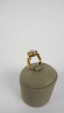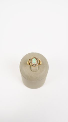 Bague en or, ornée d'une opale entoureage de brillants