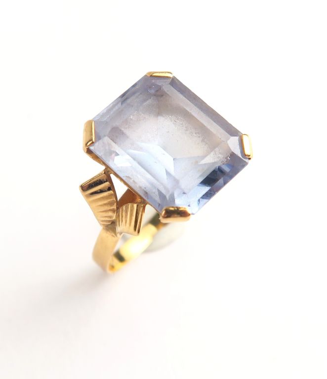 Bague en or ornée d'une topaze bleue. Poids tel. 5 g