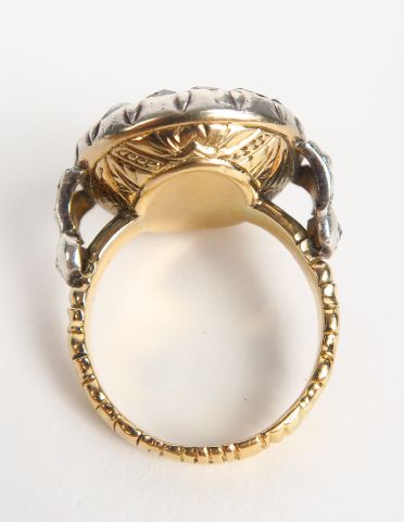 Bague espagnole en or ornée d'un pavage de roses. Poids tel : 11,26 g AC