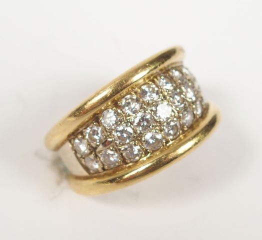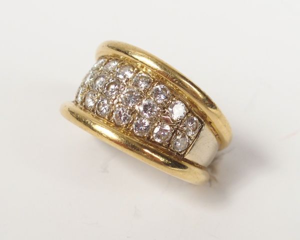 Bague jonc en or jaune et or blanc, pavage de 23 diamants de 0,05ct environ. TDD 61 Poids tel: 12,2gr