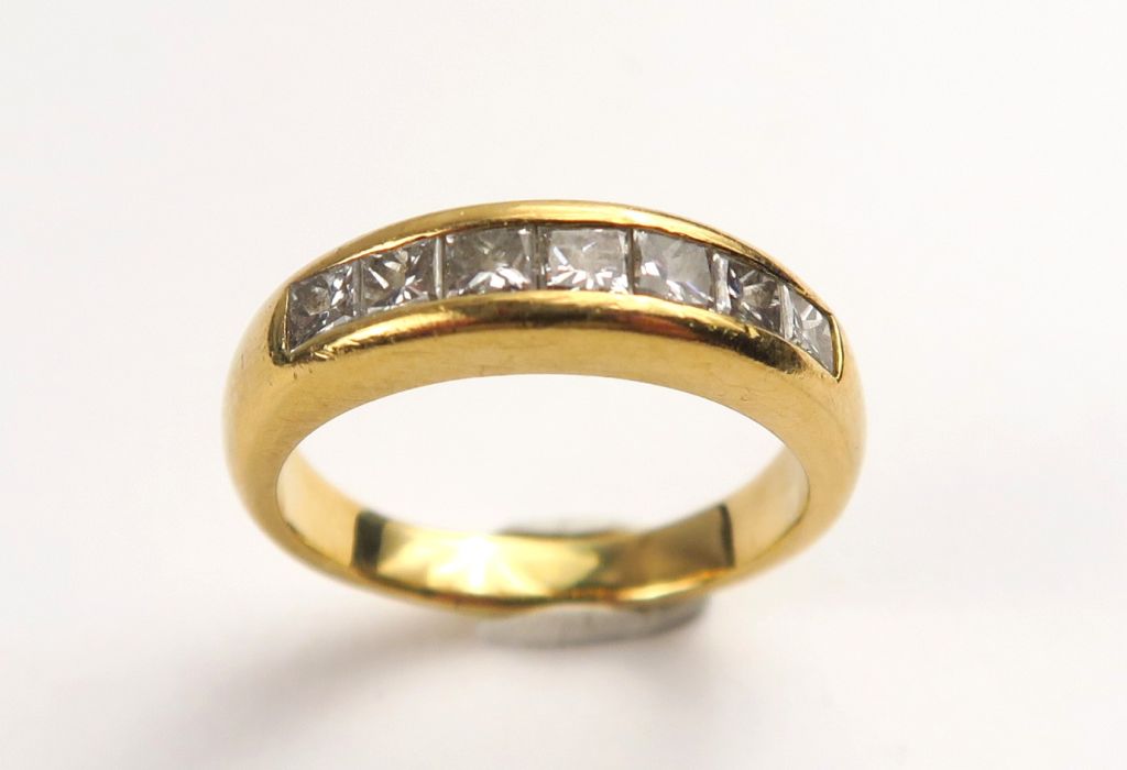 Bague jonc en or jaune, ornée de sept diamants calibrés. TDD. 51 Poids tel. 1,14 g