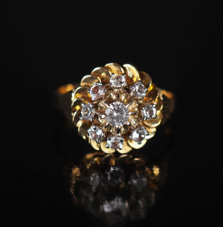 Bague marguerite 1900 en or jaune 750 et pierre à l'imitation du diamant Poids : 4 g