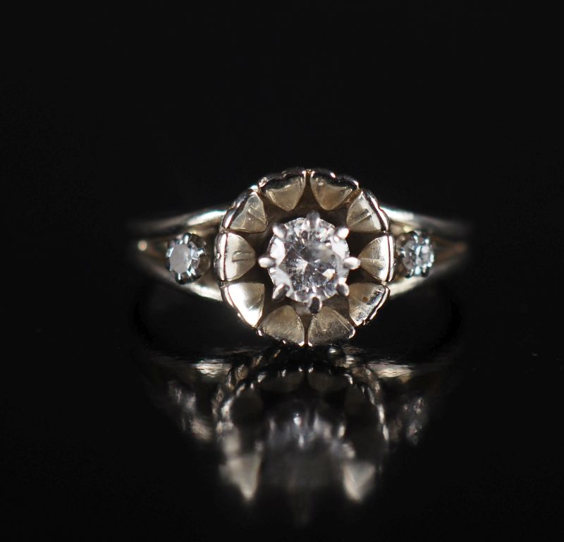 Bague marguerite en or blanc et trois diamants, le diamant central pesant environ 0,2 cts Poids tel : 5,30 g
