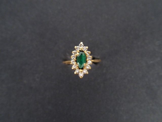 Bague marguerite en or jaune, ornée en son centre d'une émeraude entourage de brillants. TDD 47 Poids tel: 2,2gr