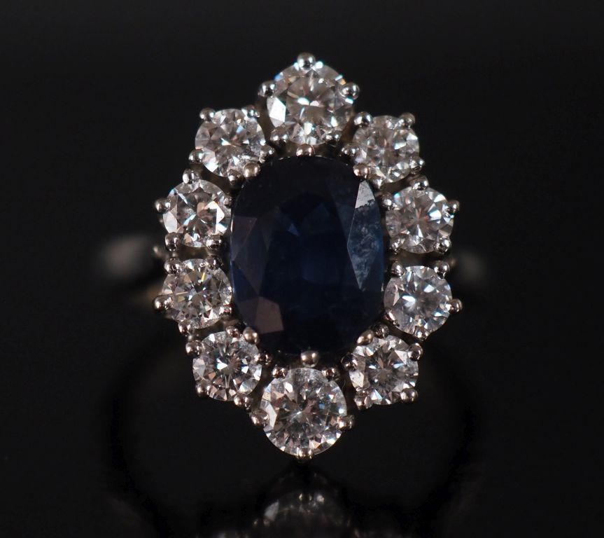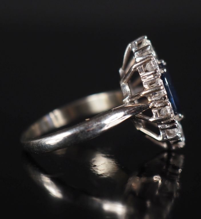 Bague marguerite, saphir entouré de 10 diamants. Poids : 5,30 g