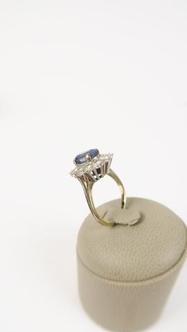 Bague marguerite, saphir entourée de 12 brillants. 6 g