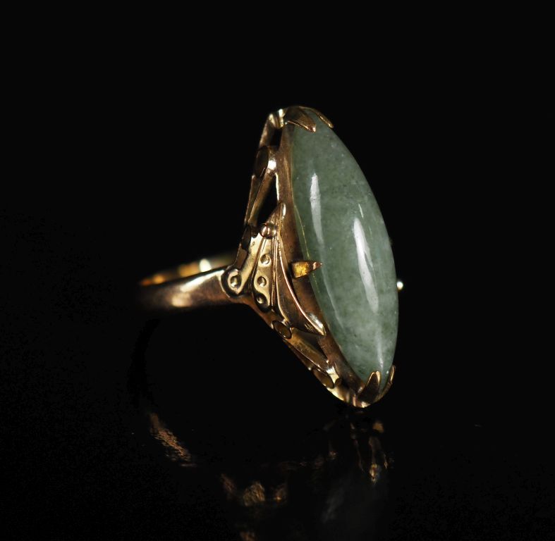 Bague marquise indochinoise en or 750 et jadéite Poids tel : 3,75 g