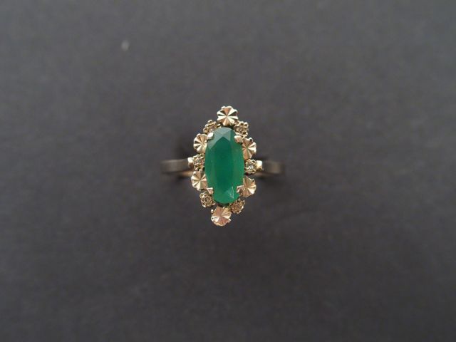 Bague marquise monture or blanc, ornée en son centre d'une émeraude de 1cts environ. TDD 54 Poids tel: 3,5gr
