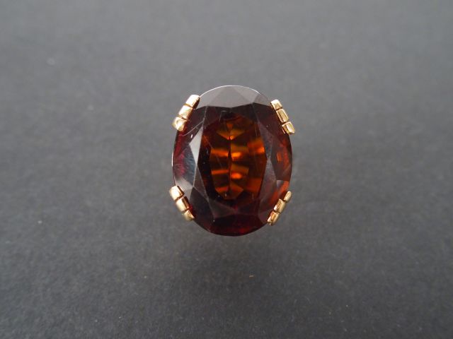 Bague monture or jaune ornée d'une citrine brune de 22cts environ. TDD 49. Poids tel: 12,3gr