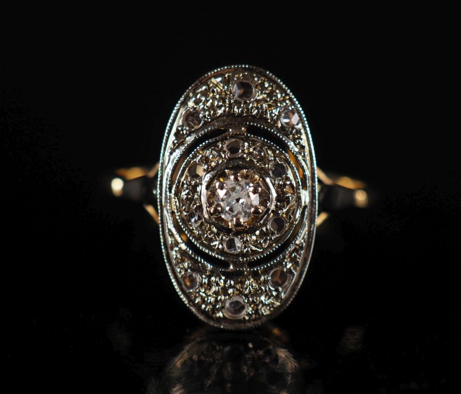 Bague Napoléon III en or et roses, une pierre à l'imitation du diamant. Poids tel : 2,30 g