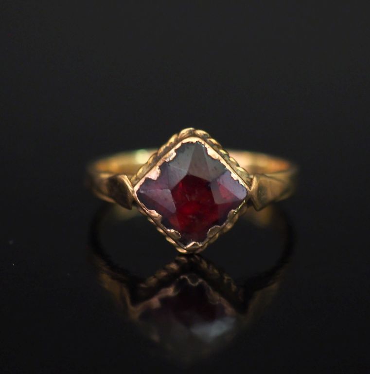 Bague Napoléon III en or jaune 750, sertie en son centre d'un grenat (?). TDD. 53 Poids tel. 2,53 g